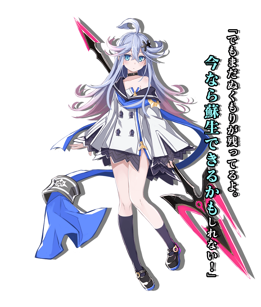 ...Or that was the case, in one timeline. In the other story that is Mary Skelter 2, Little Mermaid never went into Blood Skelter. Surviving to relative adolescence, she works alongside Otsuu and Red Riding Hood as members of Dawn.